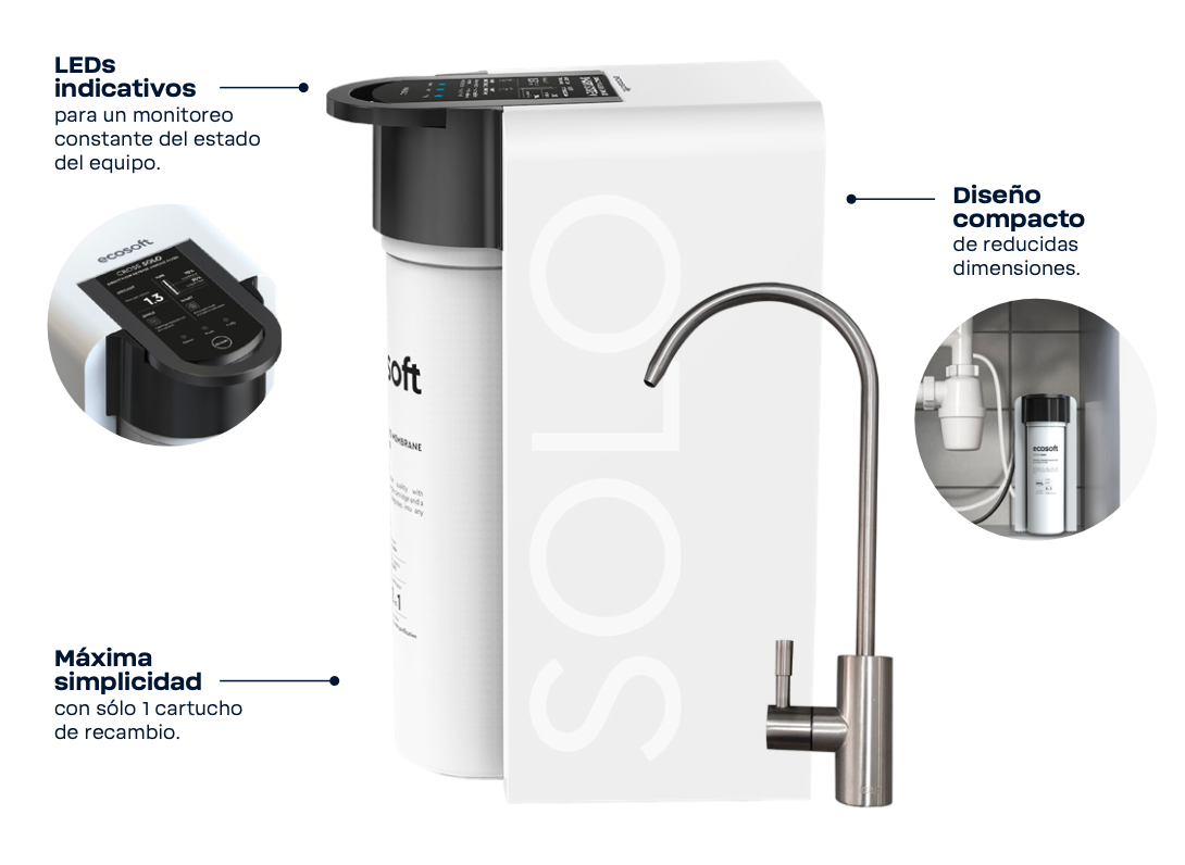 Sistema de ósmosis inversa de flujo directo que combina eficiencia, sostenibilidad y comodidad en un diseño compacto y conversion 55%.